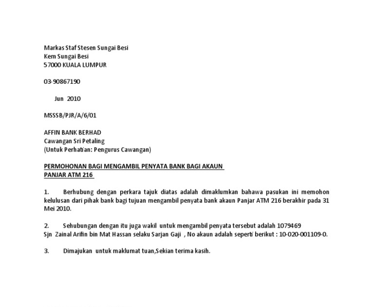 Contoh Surat Permohonan Penyata Bank Kokakka